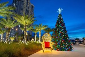 Mount Dora is one of Florida’s most festive small towns. Downtown lights up with thousands of bright displays, storefront decorations, and a cheerful community tree. It has the kind of cozy holiday energy that feels written for a Hallmark movie moment.